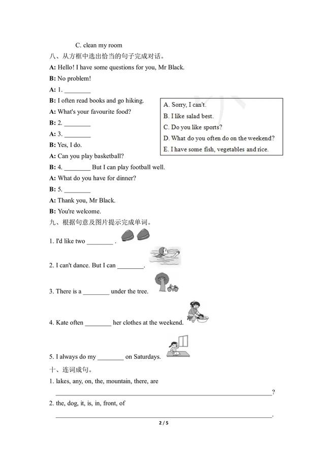 小学四年级英语上册第二单元检测第一课 图片版 四年级英语单元测试上册 奥数网